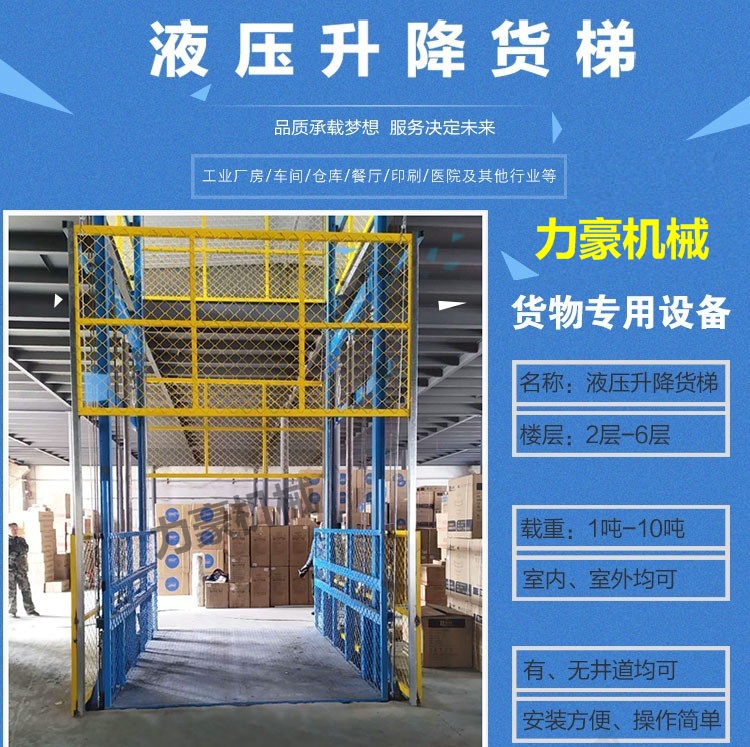 山東濟南力豪機械制造有限公司常年供應(yīng)全國各地及:升降貨梯、液壓貨梯、電梯井道升降貨梯、廠房貨梯、倉庫貨梯、庫房貨梯、電動簡易貨梯、導軌式升降機、剪叉式貨物升降機、裝卸貨平臺等適用于多層廠房樓層間進行原材料輸送、大型生產(chǎn)設(shè)備舉升,多層物資、成品倉庫進行樓層間貨物輸送,汽車4s店、大型汽車修理廠進行汽車樓層間儲運,電站、垃圾焚燒處理中心進行大型汽車載貨垂直輸送原料等工序的升降作業(yè)設(shè)備,化工、防爆等特殊要求作業(yè)場合可設(shè)計定做防爆電器的特殊產(chǎn)品,升高1米至36米載重0.2至100噸等各種型號的產(chǎn)品可根據(jù)您的使用要求定做,歡迎來電咨詢。